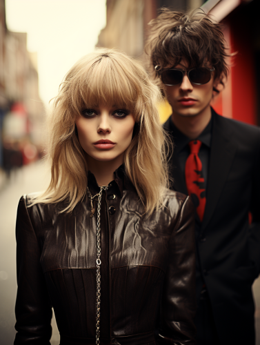 boy & girl in 60's youth culture fashion, on the london street, full body shot, photo by Ellen Von Unwerth --s 800 --ar 3:4 --v 5.2