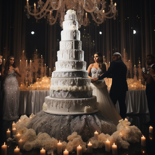 the Kardashians, a show-stopping wedding cake design is a must. A grand, multi-tiered cake in a contemporary style would befit their glamorous persona. Incorporating intricate details like textured metallic finishes, crystal embellishments, and cascading edible diamonds would add an extra touch of extravagance.