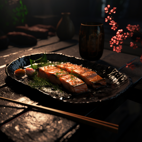 kizami nori on a plate in a beautiful dark setting, high details uhd ar 3660:2440