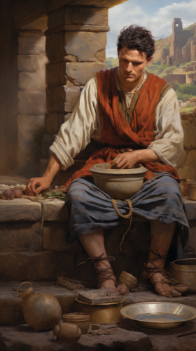 Ancient roman general from back, looking at military camp, Donato Giancola style concept art 8k