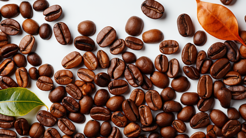 a professional photograph of somecoffee beans, white background, top view, realism, realistic, focal length 150 mm --v 6.0