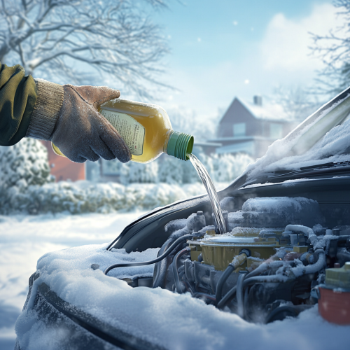 apres ski editorial cabin minimal tablescape close up view with a person wearing a puffer jacket and snow appropriate clothing, focus on the torso area, fashion sunglasses on the table as a focal point