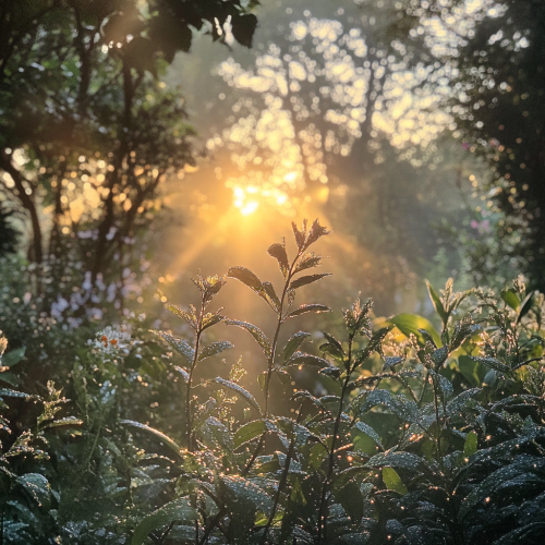 A serene and hopeful landscape depicting a sunrise over a lush, green valley. In the foreground, a gentle path winds through vibrant wildflowers and dew-covered grass, leading toward the horizon where the sun is just beginning to rise. The sky is filled with soft, pastel colors--pinks, oranges, and blues--casting a warm, golden light over the scene. In the distance, a silhouette of a person stands on a hill, looking towards the sunrise with a sense of anticipation and hope. The atmosphere is calm and uplifting, symbolizing the promise and potential of the future.
