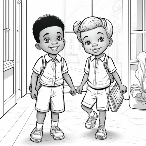 Create me a colorful image of a classroom of four year old African American boys and four year old African American girls. The children are sitting at a table coloring. ALL OF THE CHILDREN ARE BLACK CHILDREN The scene should resemble a kindergarten classroom.