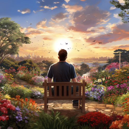 **beautiful spring flower garden painting in the background is a white gazebo, ar 16:9, --s 750 --v 5.2
