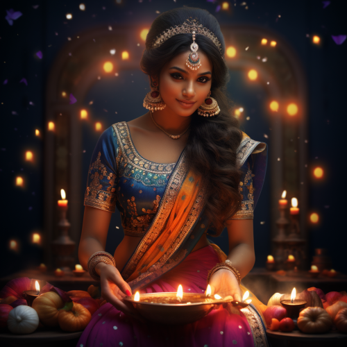 A Beautiful Indian Lady Celebrating Diwali Festival