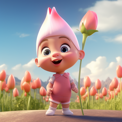 a dutch mural, tulip field, red and green colors, photo realistic, morning dawn, sun coming up