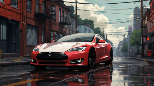 a delorean on an urban street in the early 1900's, sketched in a comic style. --ar 16:9 --c 50 --stylize 300