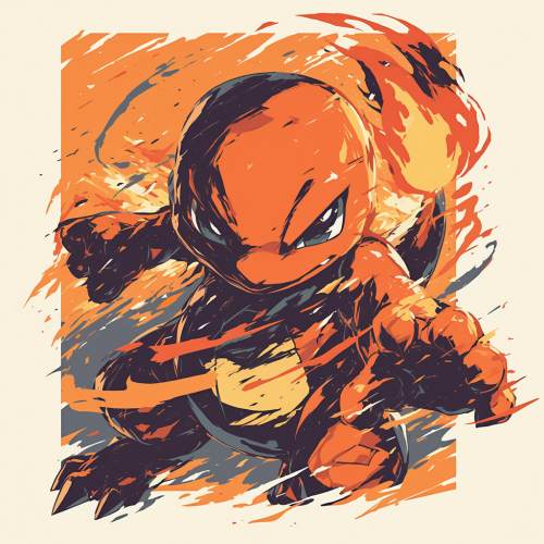 a Pokemon inspired logo, with charmander's face, ken sugimori, ultra charadesigned, brushwork mastery, 32K, absurd res, dynamic pose, fiery background--ar 1:1 --niji 6 --s 750
