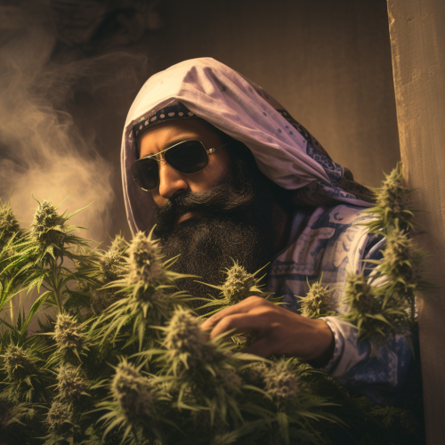 osama bin laden lookalike surrounded by marijuana plants inside of dust 2, the classic CS map