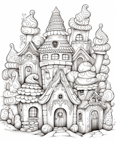 coloring page for kids, gingerbread house image, black and white, clear image, no text, cartoon style, clear outlines, low detail, no color, no shadow --ar 9:11