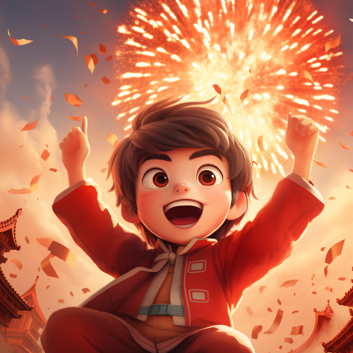 Chinese new year, day time, few firecracker, red tone, cartoon style, backgroug only, 4K – ar 3:4