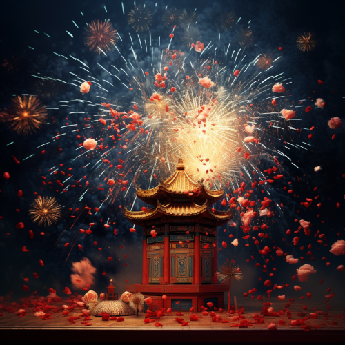 3d chinese new year set,minimalism,firecracker, poster style --s 750 --c 50 --ar 2:3 --style raw
