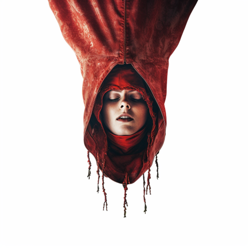 detailed picture of a woman without a head hanging upside down, white background --v 5.2