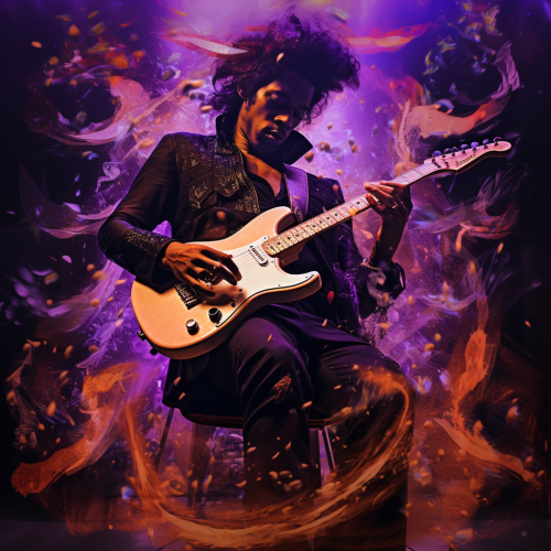 a Jimi Hendrix collage playing a fender Stratocaster upside down