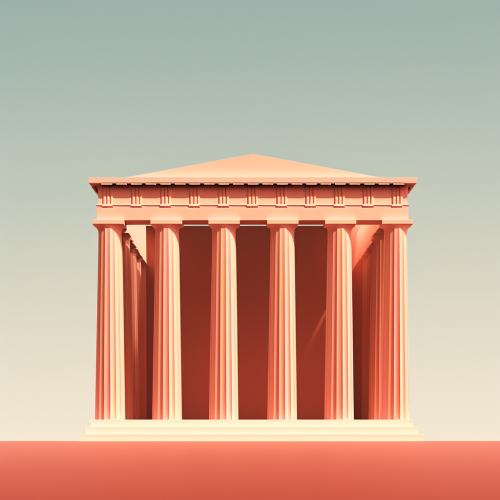 minimalist poster of a Greek parthenon style building with cell shaded in a futuristic style in 16:9