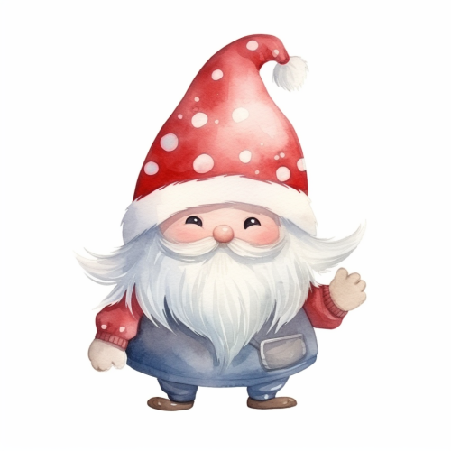A Christmas gnome with presents in watercolor style