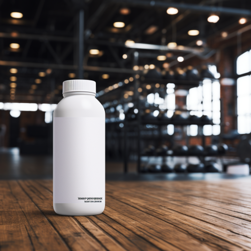 Mockup empty, a blank supplement bottle, paper label with no text, GYM background