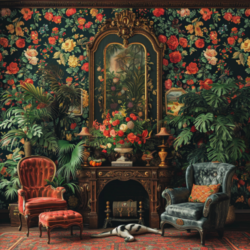 wallpaper at a british adventurer's club. endless pattern --v 6.0 --s 250