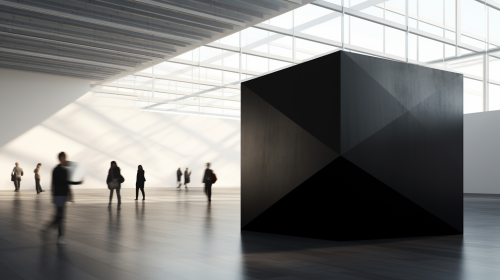 a minimal modern logo featuring a broken cube, black and white, transparent background