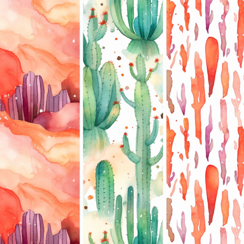 for create a pattern i need simply elements single, set, Alcohol ink, minimalist abstract Watercolor pattern of desert rocks and plants cactus --v 5.1 --s 250