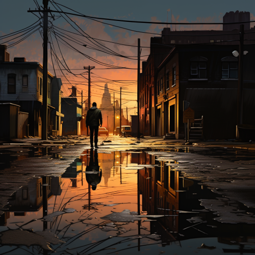 A quaint street scene in a small American town, reminiscent of Seattle, lined with charming two-story buildings.Gorisontal fasade. Each building features unique architectural details, with warm brick and wooden facades in inviting tones. Some houses have cozy balconies adorned with flower boxes, while others display colorful awnings over their front doors. The street is bustling with activity, as locals stroll by and chat with neighbors, creating a friendly atmosphere. Lush trees line the sidewalk, providing shade and a touch of nature, while small shops and cafes add to the vibrancy of the scene. The sun filters through the leaves, casting dappled light on the pavement, evoking a sense of warmth and community in this picturesque neighborhood. --ar 2:1