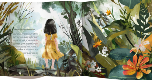 Illustration: A cute bear is planting rice,Thailand watercolor--ar 1:1 --v 6.0