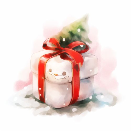Kawaii Christmas cute babyon a white background in a watercolor style, gift --stylize 250 --v 5.2