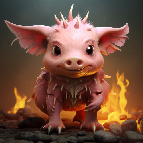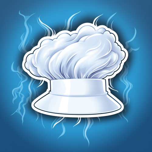 a sticker logo of pig wearing chef hat, pretty, white background,hold a fork and pork in 3D behind it, very attractive and with fire colors and black --s 250 --v 6.0