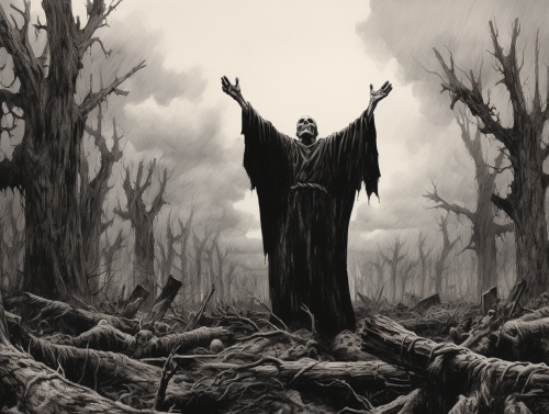 A Dark, Gothic Landscape with Rotting Dead Trees