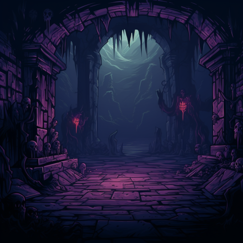 dungeon background. darkest dungeon game style. 2d cartoon style. no lighting. cavern biome.