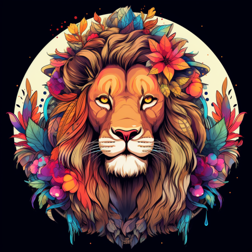 lion circle tshirt design, in style of detailed botanical illustrations, colorful cartoon, exotic atmosphere, 2d game art, white background, contour — no mokup