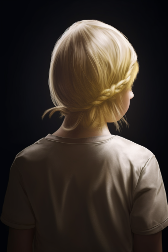 blond kid girl isolated is photographed from behind with Blindfold of captive, cinematic lighting, hyper-realistic, complex, realistic, detailed, volumetric light and shadow complex, elegant, highly detailed, smooth, sharp focus, illustration, elegant, hyper-detailed, cinematic, volumetric lighting,ultra-detailed background, bright, glowing, ultra-detailed, octane rendering, Detail enhancement, 3D rendering, Epic beautiful scene, Cinematic, post-production, depth of field, Cinematic photography, cinema, color grading, Professional color grading, 55mm lens, Exquisite detail, sharp focus, sophisticated, long exposure time, f/8, ISO 100, 1/125 shutter speed, diffuse backlight, award-winning photography, realistic photography, hyperrealistic, unrealistic engine, realistic highlights, real lighting, lettering, hyperrealistic, 8k, detailed, photography, cinematic Lighting, Studio lighting, Beauty lighting, Accent lighting, Global illumination, Screen space global illumination, Ray tracing, Global illumination, Optics, Scattering, Glowing, Shadows, Rough, Flicker, Ray traced reflections, Reflections Lumens, Screen Space Reflections, Diffraction Gradation, Super Detailed, Hyper Realistic, Ornate, Beautiful, Soft Light, Supermodel, Photorealistic, --ar 2:3 --v 5.0