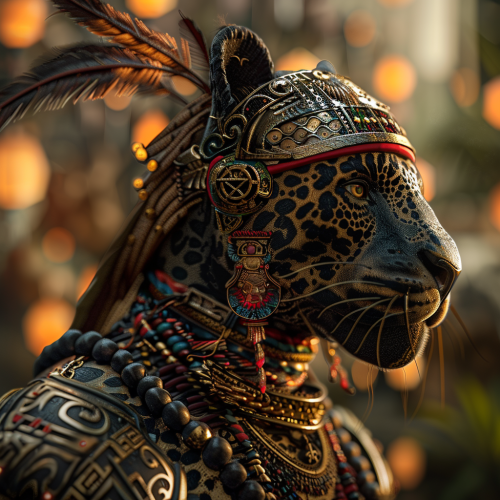 Mayan jaguar warrior, testp, bokeh blur, cinematic lighting, dramatic lighting, hyper realistic, hyper detailed, digital art