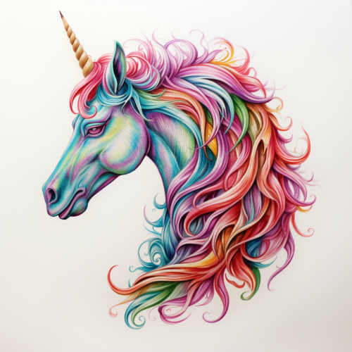 The colorful, minimalist pencil drawing of a unicorn. just shape