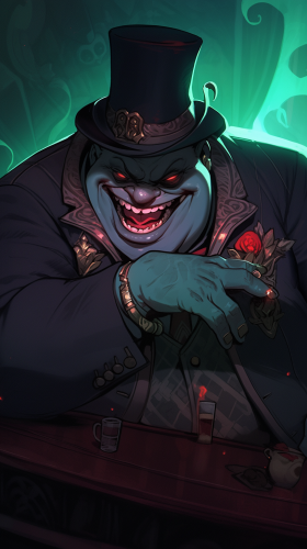 a dnd tavern in the city of waterdeep. Make a top down map of the tavern. It is a large tavern with a well stocked bar and with many bottles. the tavern should have a large fireplace and a wine cellar. --s 250