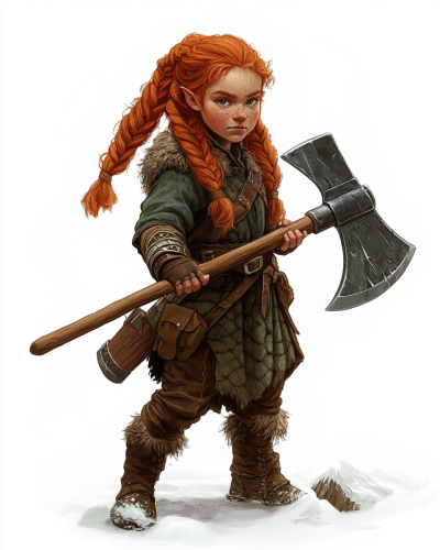 A charming and gruff dwarven warrior puppet, clearly handmade and carved from a sturdy oak root. His bushy beard is made from frayed moss and lichen, and he wields a tiny axe fashioned from a sharpened nail. His resolute expression and sturdy frame convey strength and determination. not scary or murdery.