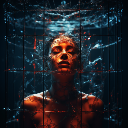 Very Powerful, Meaningful, and Stunning Visual Prompt Sentence: A futuristic, transparent energy cage encasing a vibrant, pulsing light, set against a dark void, symbolizing the tension between power, control, and the desire to break free. Art Style: Futuristic Sci-Fi --v 6.0