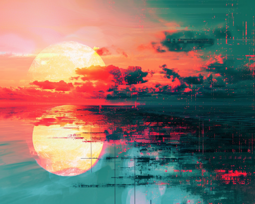 a digital abstract sunrise, glitchy, dieselpunk, --ar 5:4 --v 6.0