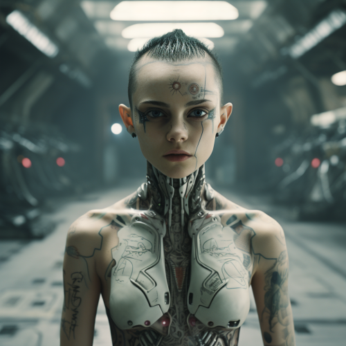 **Photograph, ultra - wide shot, style Elysium, a dystopian future, a unique alian ET type character, gentle-eyed, smiling, with large eyes. dramatic lighting, 4K