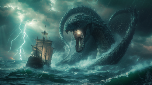 A Giant Leviathan Emerges from Stormy Ocean Waves