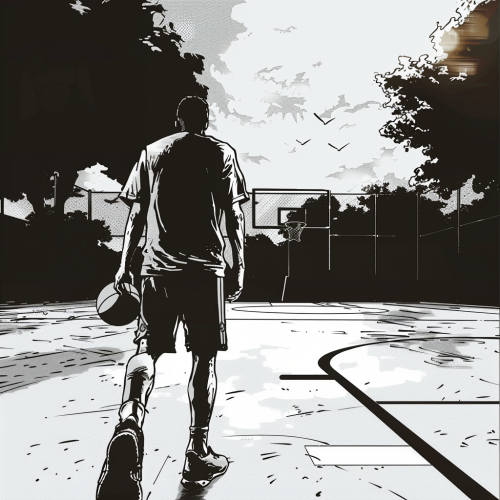 cartoon of a high school basketball player slam dunking a basketball, cartoon, caricature --ar 3:4 --s 300 --style raw