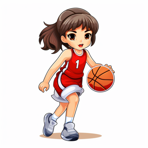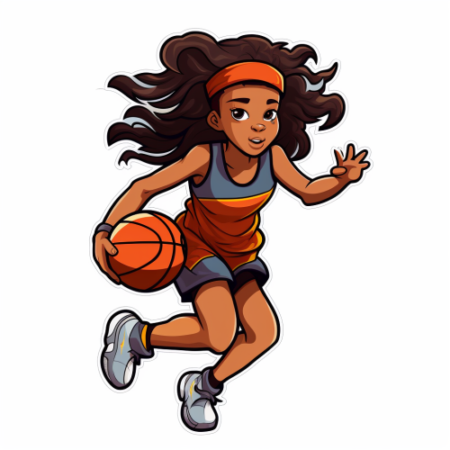 logo of a girl basketball player, flat colors, simple lines, white background, vector, sticker