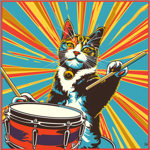 primitive graphic illustrations. plot: a girl plays with a cat. vector image, detailed image with a minimum of details. smooth lines, in the style of Roy Lichtenstein. calm muted colors: blue-gray, green, beige, orange, white. --v 6.1