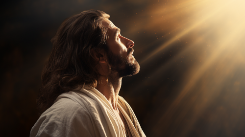 JESUS PROFILE PRAYER , The image should focus , hyperdetailed, high resolution, UHD, 8K, Ultra High Definition, High Quality, 32K, HDR, --ar 16:9