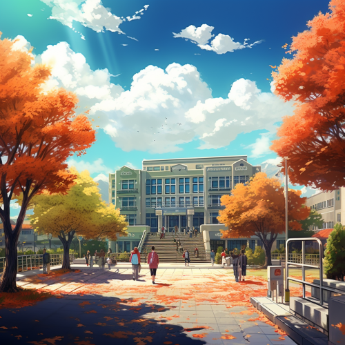 a Chinese female middle school student wearing glass sitting on her chair in the classroom, she is looking out of the window, on her desk are piles of books, in 2D style