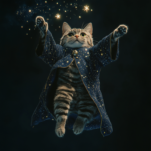 A chibi-style cat wearing a Hogwarts robe and a wizard’s hat, with a wand in its paw. The cat is casting a spell in a Hogwarts classroom, surrounded by magical artifacts and enchanted items. High quality, 8k resolution. --ar 9:16