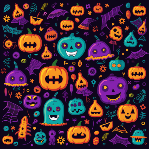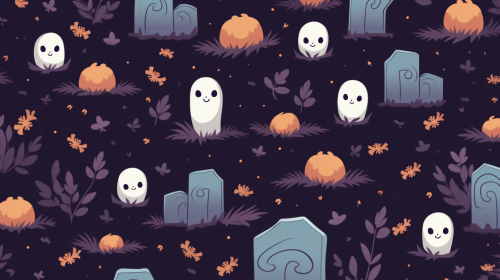 A Halloween-themed pattern with pink background and spooky elements