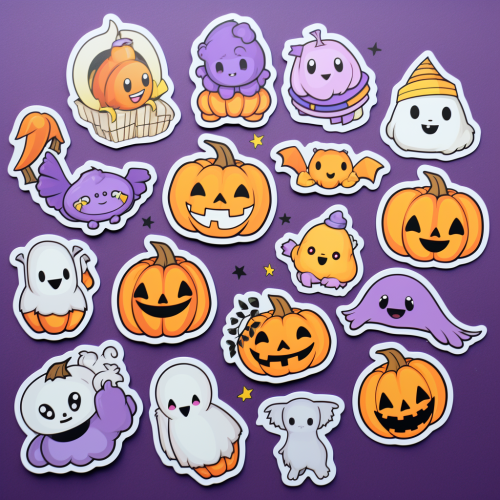 halloween spooky themed assorted stickers, orange and purple, kawaii --niji