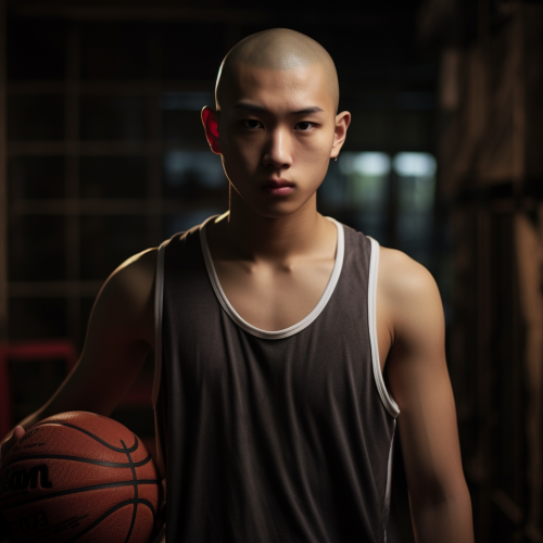Asian handsome boy,A handsome young man forced to shave his head,Wear a basketball vest
